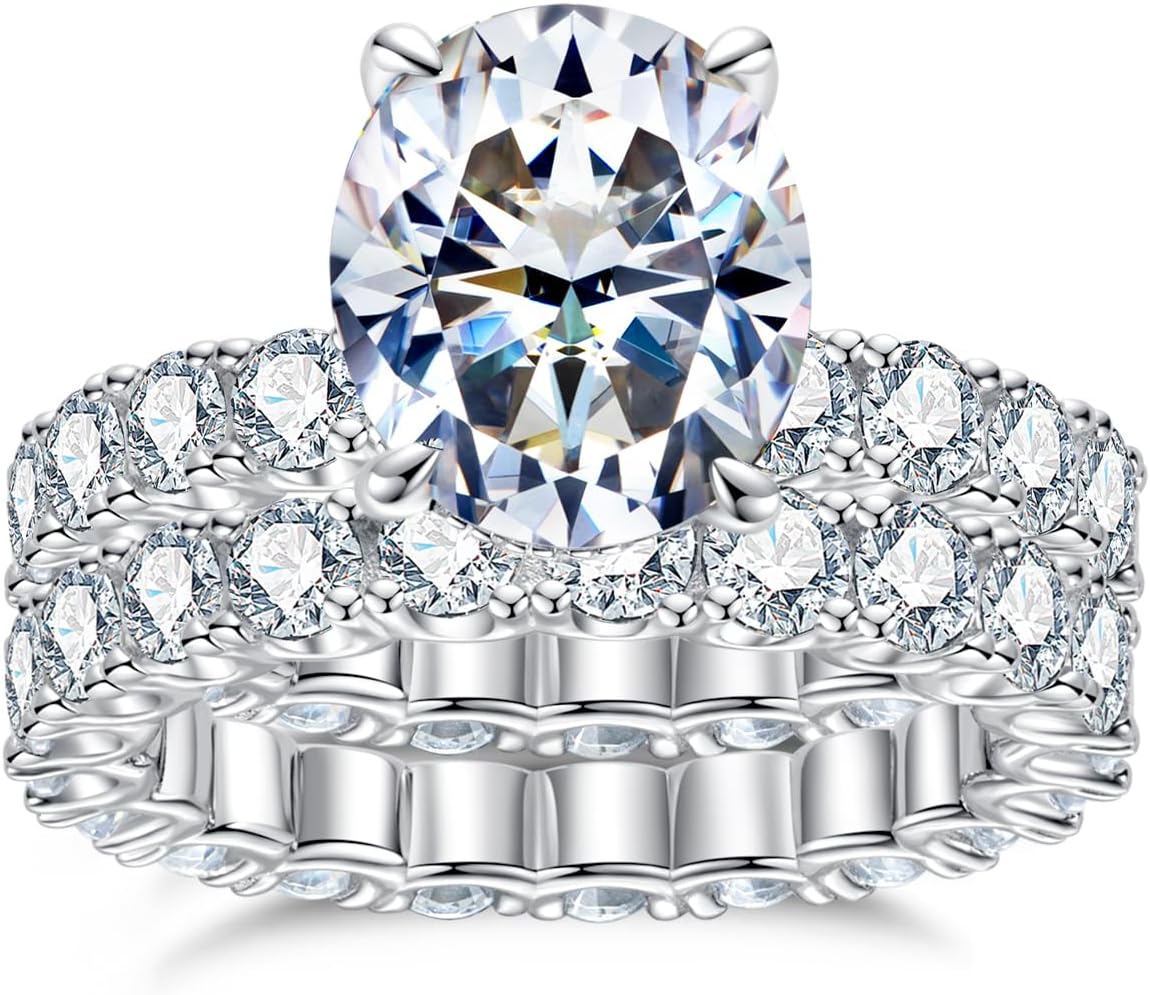 2 PC Oval Cut Moissanite Sterling Silver Bridal Sets