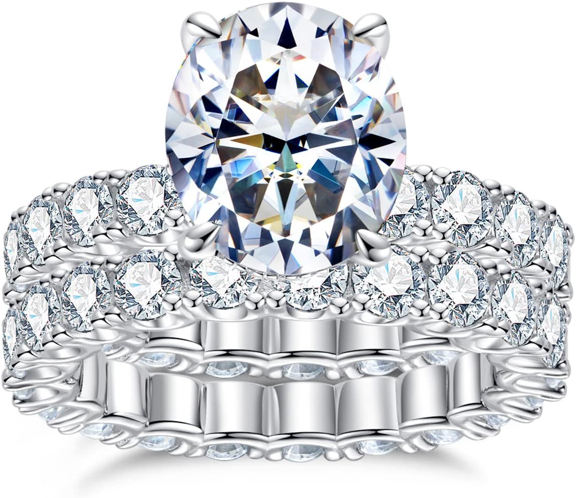 2PC Oval Cut Moissanite 925 Sterling Silver Bridal Engagement & Wedding Ring Set for Women