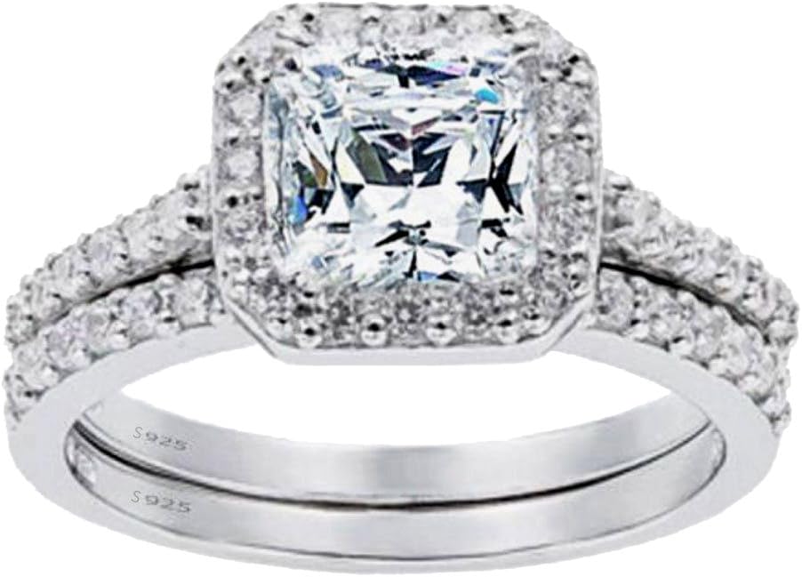 xElegant and timeless, this 2-piece Princess Cut Moissanite Bridal Ring Set is beautifully crafted in 925 sterling silver. The dazzling princess-cut moissanite engagement ring pairs perfectly with a matching wedding band, creating a radiant symbol of love and devotion. Ideal for engagements, weddings, anniversaries, or as a promise ring for her, this set combines sophistication, brilliance, and enduring beauty.
