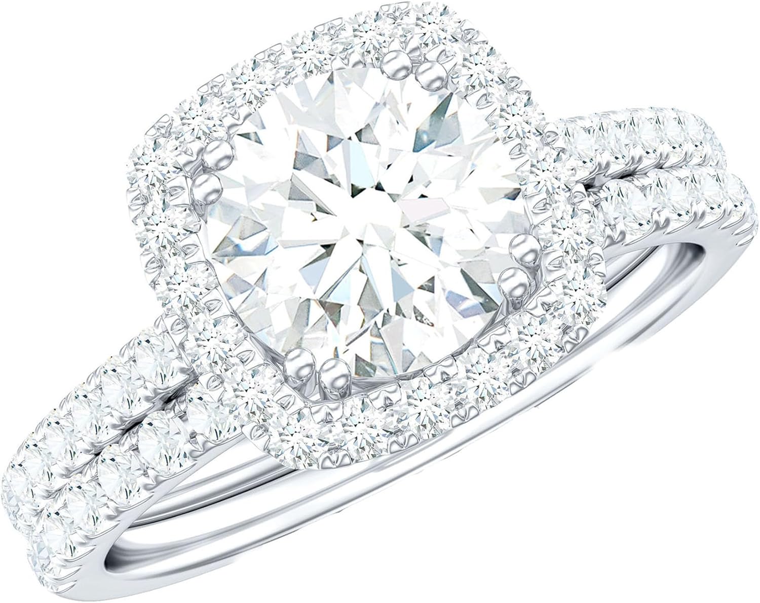 2 PC Round Brilliant Cut Halo Moissanite Sterling Silver Bridal Wedding & Engagement Ring Enhancer Set for Women
