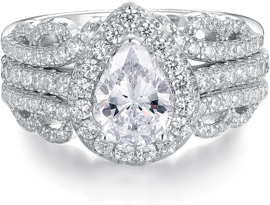 xAdd elegance and sparkle with this pear cut Moissanite bridal ring enhancer set. Expertly crafted in 925 sterling silver, this 2-piece set features a dazzling pear cut Moissanite engagement ring paired with a perfectly matching ring enhancer wedding band. With its graceful teardrop design and lasting brilliance, this bridal set is the perfect choice for weddings, anniversaries, or as a meaningful promise ring for her.