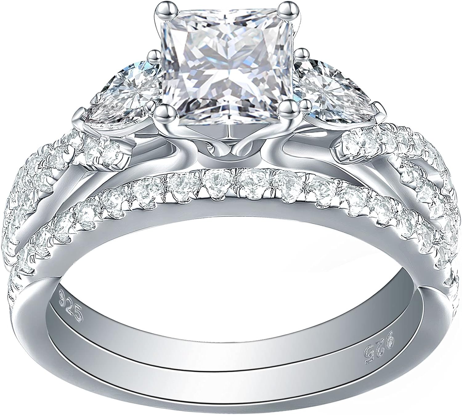 2 PC Princess & Pear Cut Moissanite Sterling Silver Bridal Wedding & Engagement Ring Set for Women
