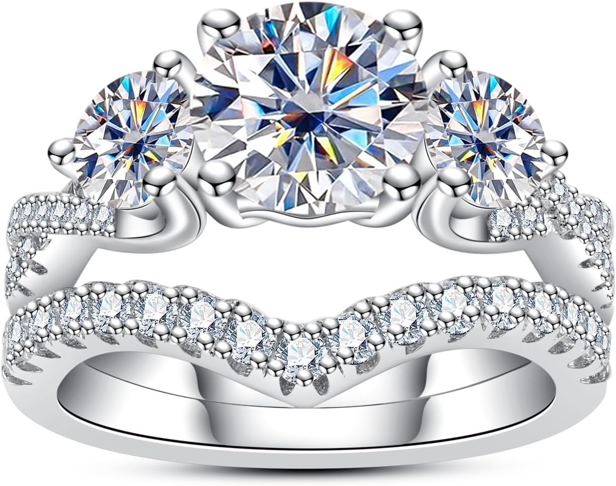 2PC Round Brilliant Cut Moissanite 925 Sterling Silver Bridal Engagement & Wedding Ring Set for Women