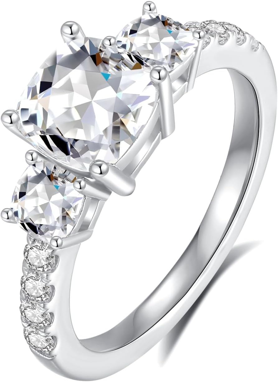 Celebrate everlasting love with this stunning 3PC Round Cut Moissanite Engagement Ring Set, beautifully crafted in 925 sterling silver. The set includes a brilliant oval cut moissanite...