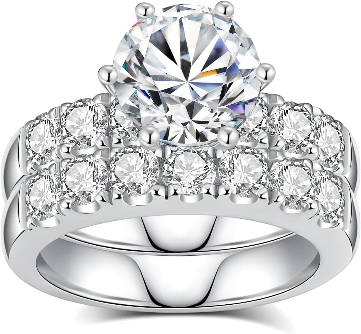 Round Cut Moissanite Sterling Silver Bridal Wedding Engagement Ring Set