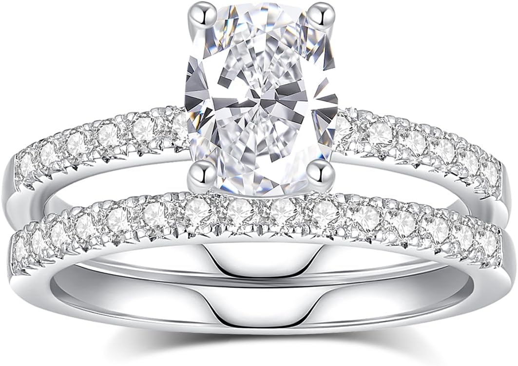 2 PC Oval Brilliant Cut Moissanite Sterling Silver Bridal Wedding & Engagement Ring Set for Women