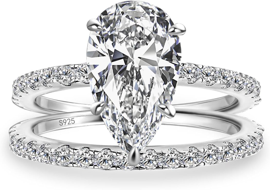 xCelebrate romance with this pear cut Moissanite bridal set featuring a stackable design. Expertly crafted in S925 sterling silver, this 2-piece set includes a dazzling pear cut Moissanite engagement ring paired with a perfectly matching stackable wedding band. With its teardrop brilliance, modern versatility, and lasting sparkle, this set is perfect for weddings, anniversaries, or as a meaningful promise ring for her.