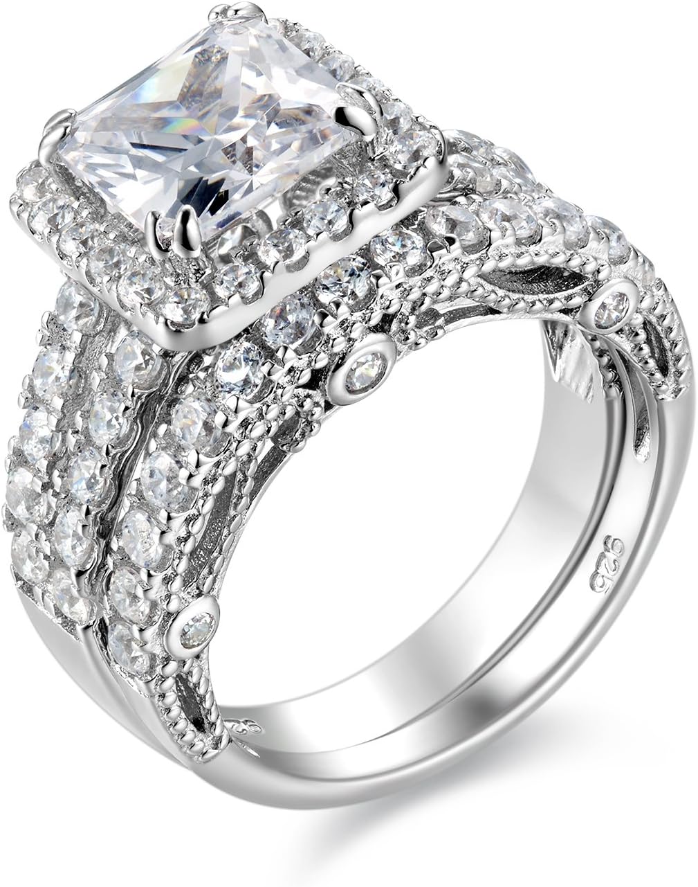2 PC Princess Cut Moissanite Sterling Silver Bridal Wedding & Engagement Ring Set for Women