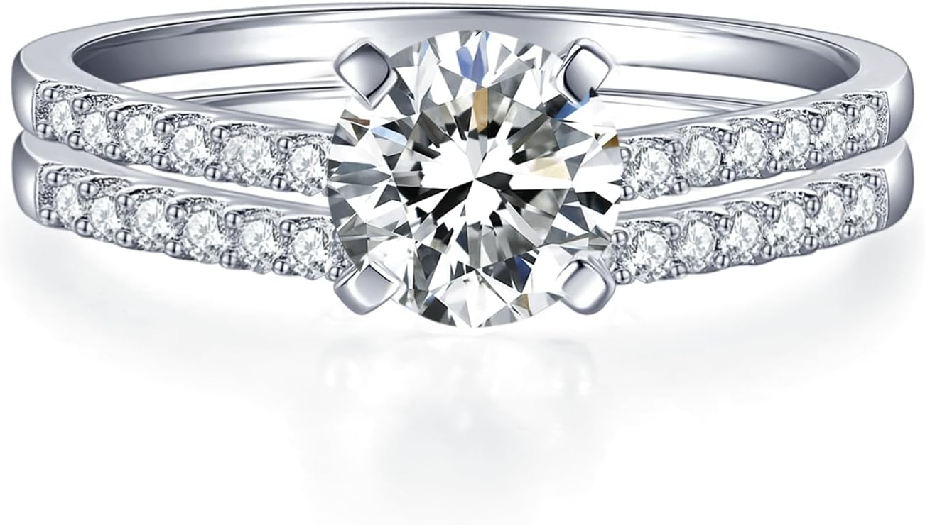 2 PC Round Cut Moissanite Solitaire Sterling Silver Bridal Wedding & Engagement Ring Set for Women