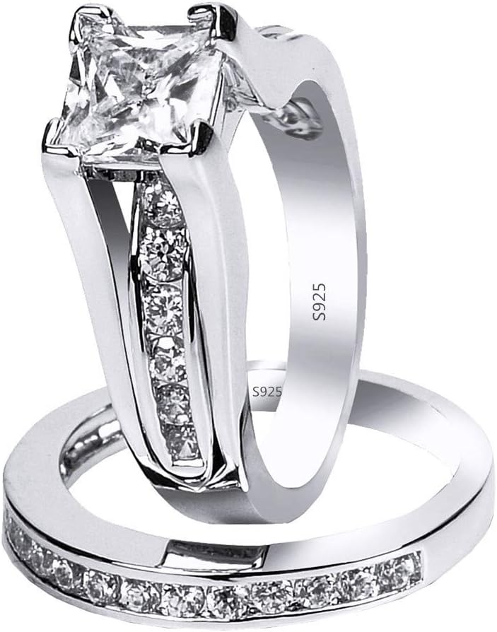 2PC Princess Cut Moissanite Sterling Silver Bridal Engagement Wedding Ring Set for Women