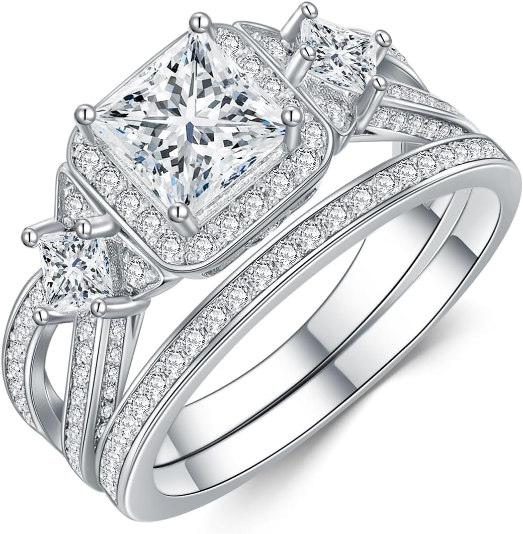 2PC Vintage Princess Cut Moissanite 925 Sterling Silver Bridal Engagement & Wedding Ring Set for Women