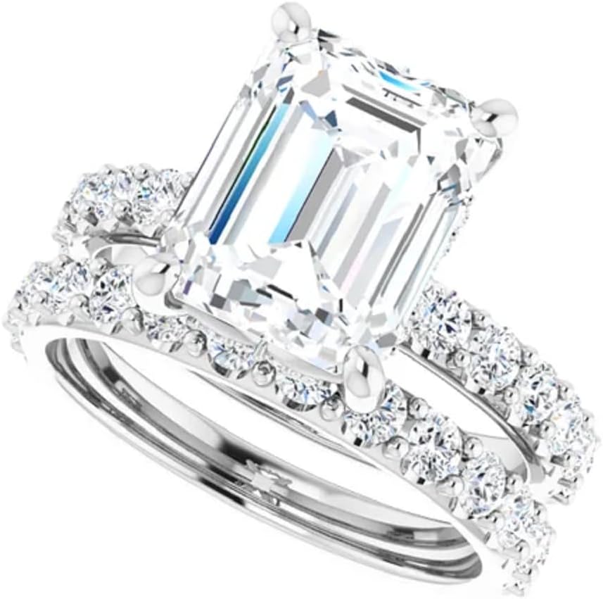 2PC Emerald Cut Moissanite Sterling Silver Handmade Solitaire Engagement & Bridal Ring