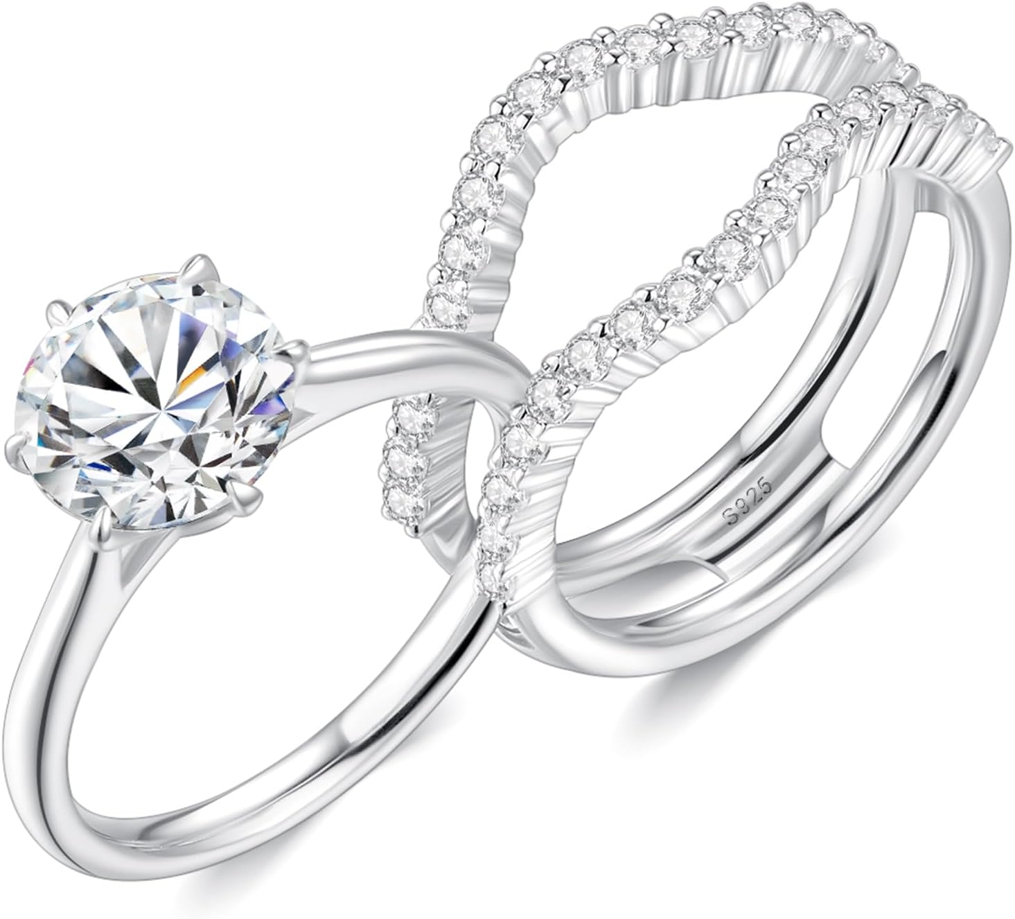 2 PC Round Brilliant Cut Moissanite Four-Prong Solitaire with Pavé Contour Band Sterling Silver Bridal Wedding & Engagement Ring Set for Women