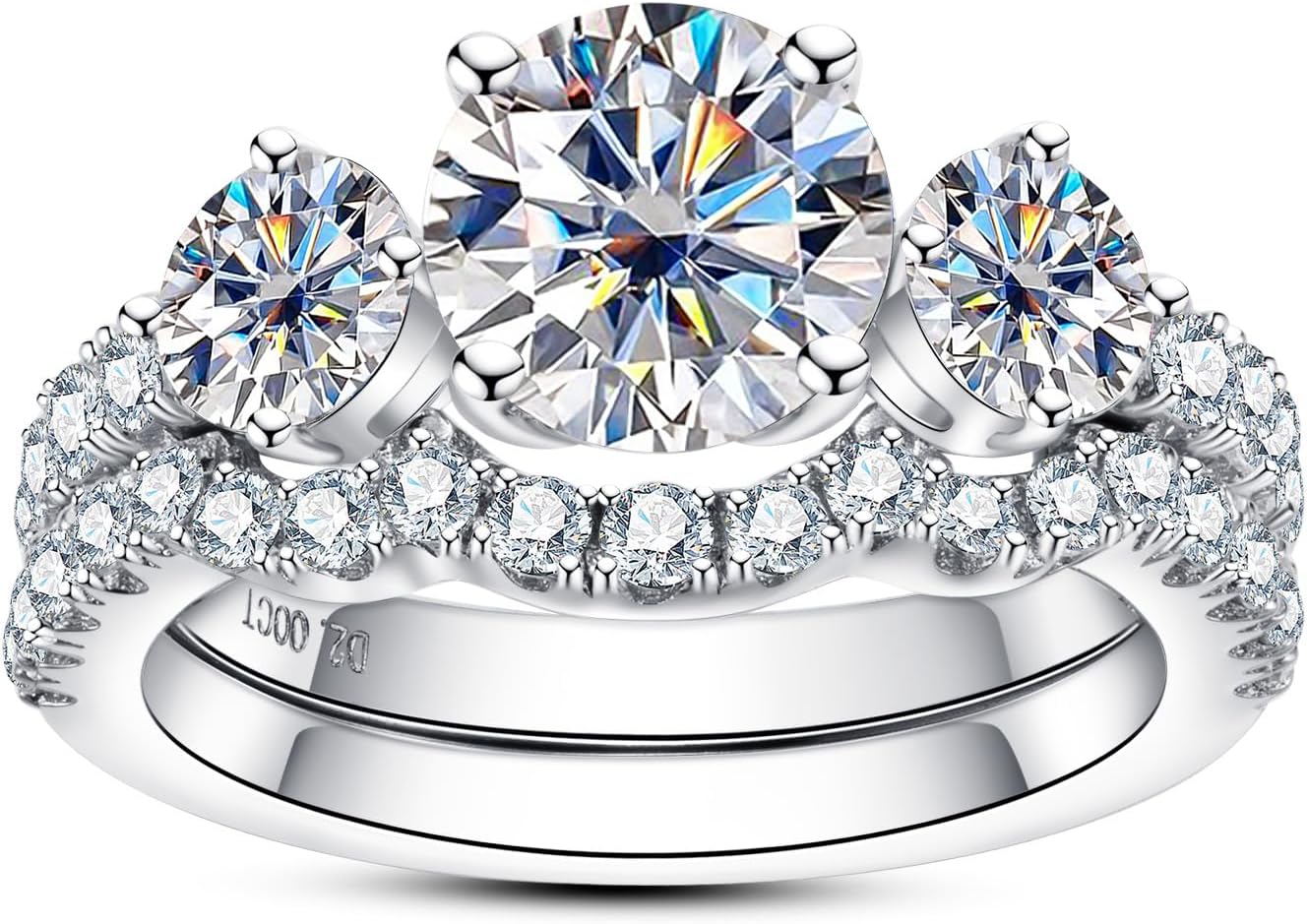 2PC Round Brilliant Cut Moissanite Sterling Silver Bridal Wedding Ring Set & Engagement Band for Women