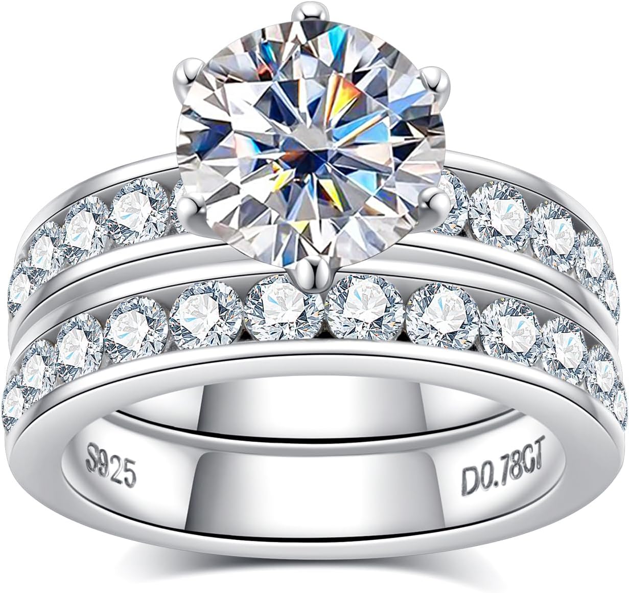 Round Cut Moissanite Sterling Silver Bridal Wedding Ring Set with Engagement Ring & Band for Women