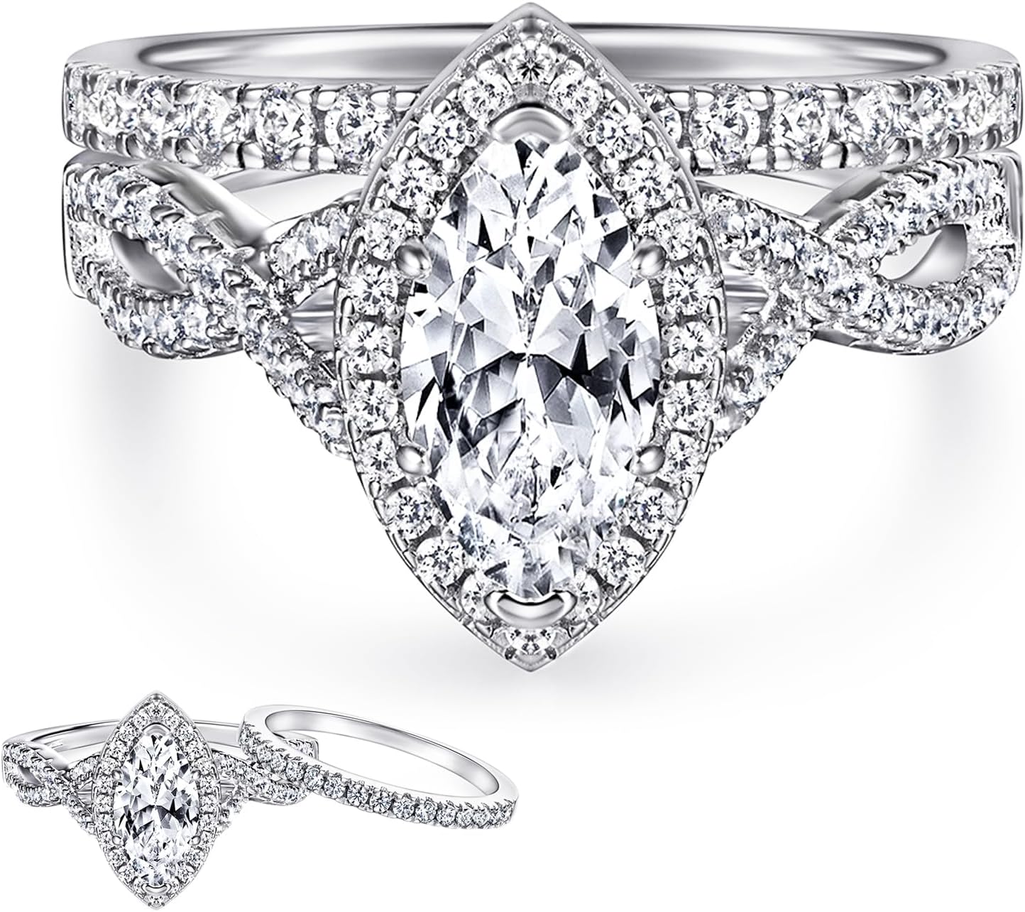 xCelebrate everlasting love with this 2-piece marquise cut Moissanite vintage bridal set. Expertly crafted in platinum-plated sterling silver, it features a brilliant Moissanite engagement ring paired with a perfectly matching wedding band. The elegant marquise cut design and vintage detailing create a timeless look, making this set ideal for weddings, anniversaries, or as a romantic promise ring.