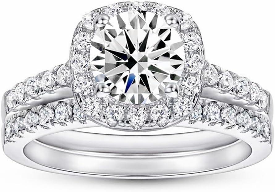 xThis elegant 2-piece Halo Moissanite Bridal Ring Set radiates brilliance and sophistication. The sparkling moissanite engagement ring features a dazzling halo that enhances the center stone’s fire, beautifully paired with a matching wedding band for a stunning stacked look. Crafted in high-quality 925 sterling silver, this set is perfect for engagements, weddings, anniversaries, or promise rings, symbolizing everlasting love with modern elegance.