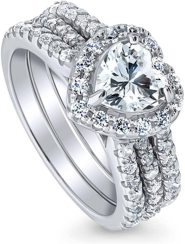 xCelebrate love with this romantic 3-piece Heart Cut Moissanite Bridal Ring Set, beautifully crafted in 925 sterling silver. The dazzling heart-shaped moissanite center stone is surrounded by a radiant halo and paired with two perfectly matched insert wedding bands. Designed to symbolize devotion, eternity, and passion, this set is ideal for engagements, weddings, anniversaries, or promise gifts.