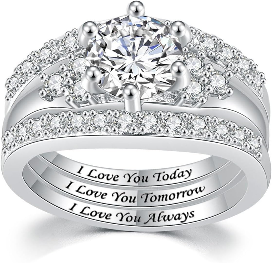 3PC Moissanite Sterling Silver Bridal Wedding Ring Set – Engagement, Wedding & Promise Bands for Women