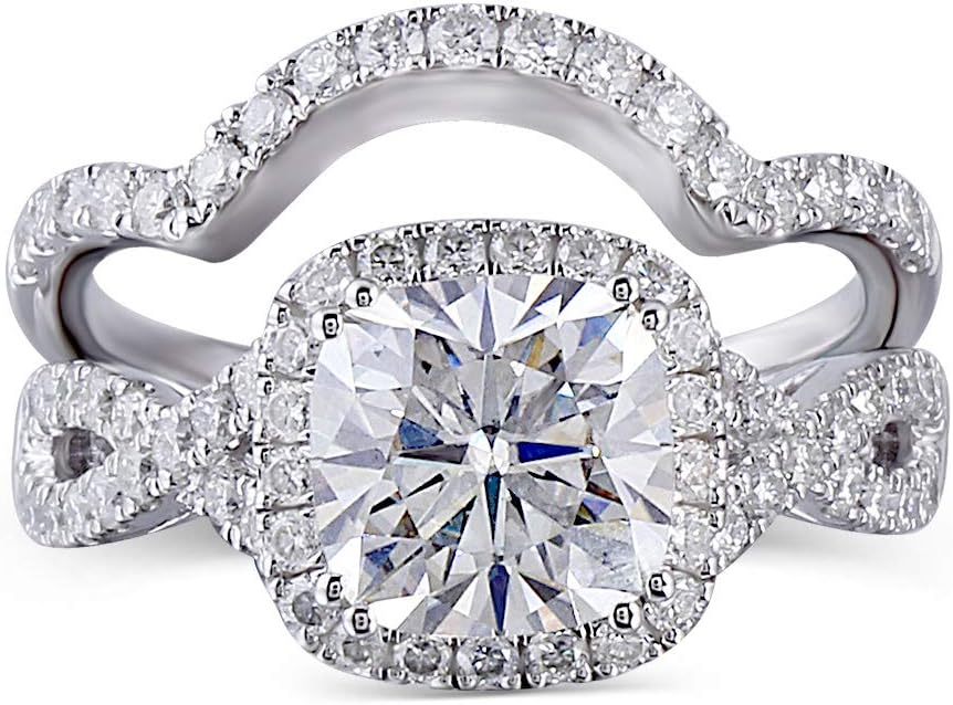 xCelebrate timeless elegance with this 2-piece cushion cut Moissanite halo bridal set. Expertly crafted in sterling silver, it features a dazzling created cushion cut Moissanite engagement ring surrounded by a sparkling halo, paired with a perfectly matching wedding band. With its vintage-inspired charm, radiant brilliance, and lasting beauty, this set is ideal for weddings, anniversaries, or as a meaningful promise ring for her.