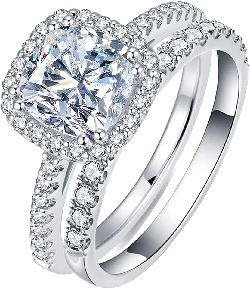 xCelebrate timeless elegance with this halo Moissanite bridal ring set. Expertly crafted in sterling silver, this 2-piece design features a dazzling inlaid Moissanite engagement ring surrounded by a brilliant halo setting, paired with a perfectly matching wedding band. With its radiant sparkle, classic craftsmanship, and lasting brilliance, this set is perfect for weddings, anniversaries, or as a meaningful promise ring for her.