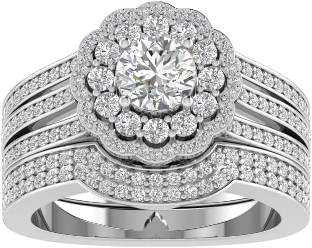 3 PC Floral Design Moissanite Sterling Silver Duo Bridal Ring Set Engagement Ring & Wedding Band