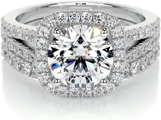 xAdd brilliance to your special moments with this Halo Moissanite Bridal Engagement Ring Set, crafted in 925 sterling silver. Featuring a dazzling moissanite center stone surrounded by a shimmering halo, this ring set is paired with a matching band for a complete and elegant look. Perfect for engagements, weddings, anniversaries, or promise rings, it’s a timeless symbol of love and commitment.